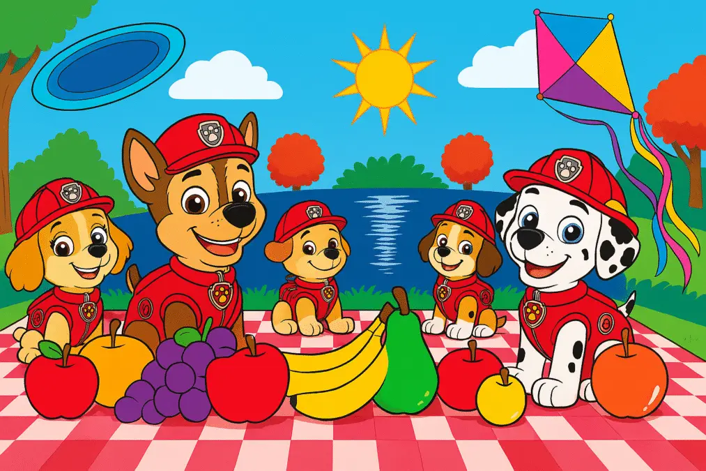 El sol brillaba con fuerza en Bahía Aventura, y desde muy temprano el aire estaba lleno de alegría. Los pájaros cantaban, las hojas de los árboles se movían suavemente con el viento, y todo parecía perfecto para un día especial. La Patrulla Canina había decidido organizar un gran picnic en el parque, y todos los cachorros estaban emocionados.