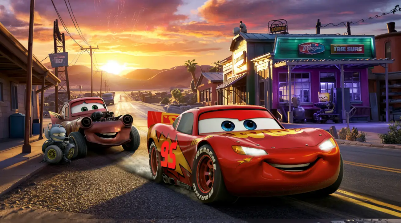 2. La humildad abre puertas 🤝: Al verse obligado a convivir con los habitantes de Radiador Springs, aprende que escuchar y aprender de los demás es más valioso que cualquier trofeo.